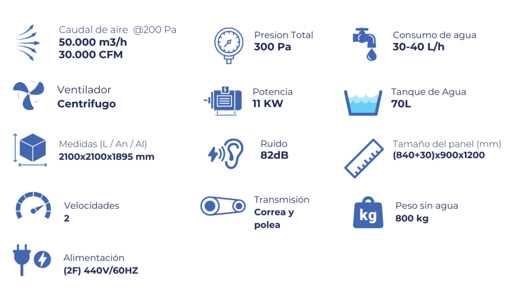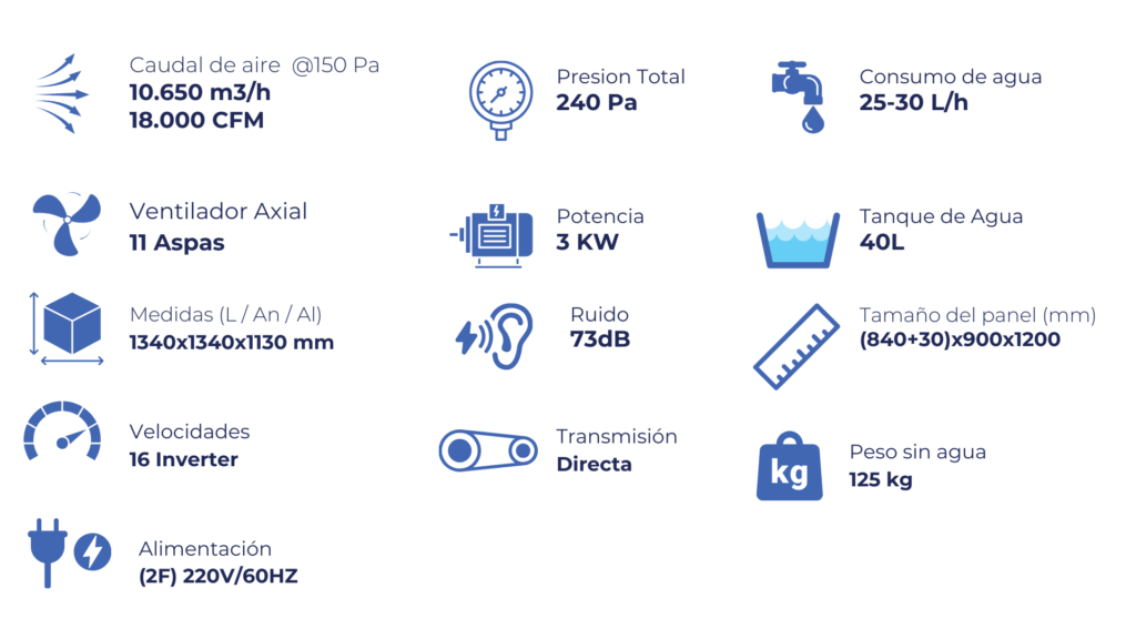 Utiliza un principio 100% natural: el aire caliente pasa a través de paneles humedecidos con agua.