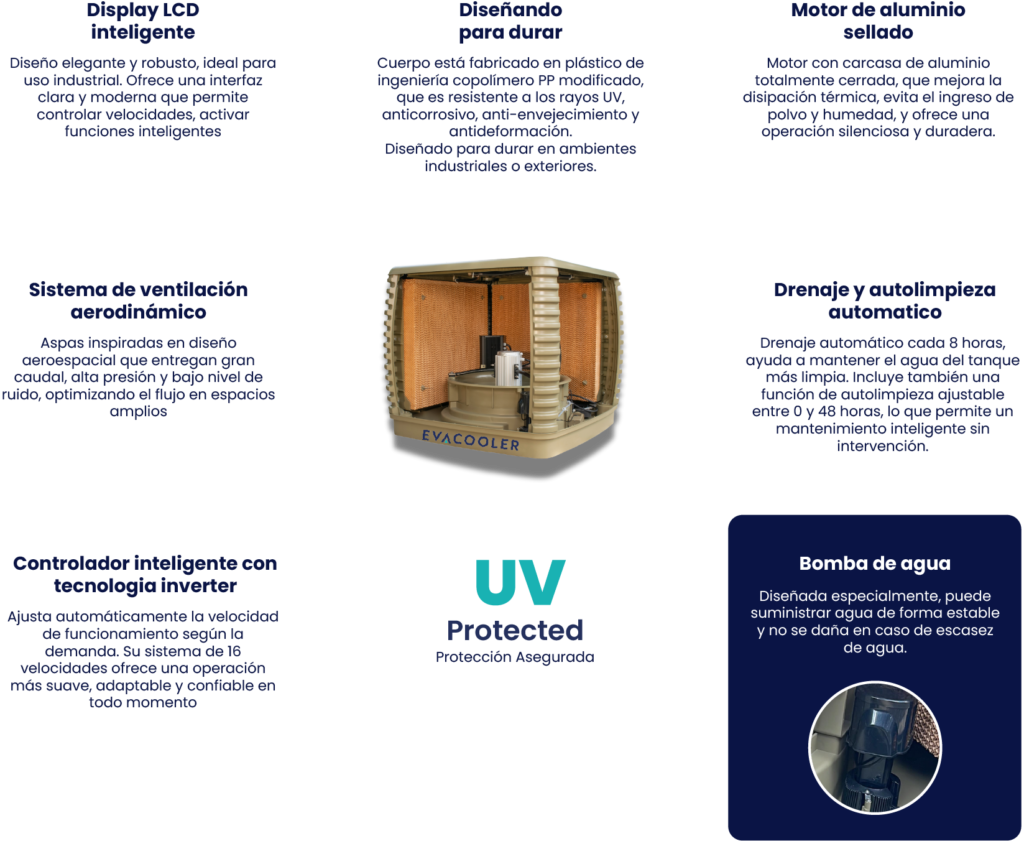 Este sistema no solo ventila, también trata el aire. Logra una sensación de confort térmico al equilibrar tres factores clave: temperatura, humedad y velocidad del aire. Frescura real, sin químicos, con eficiencia natural.