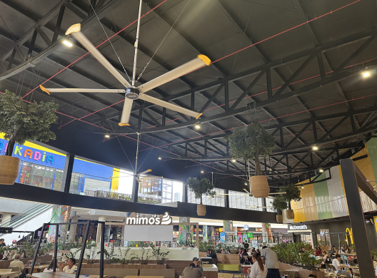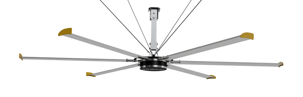 Imagina esto. Un ventilador tan grande que, con solo moverse lentamente, puede generar una brisa suave y constante en todo un bodega, gimnasio ó plazoleta de comidas.
