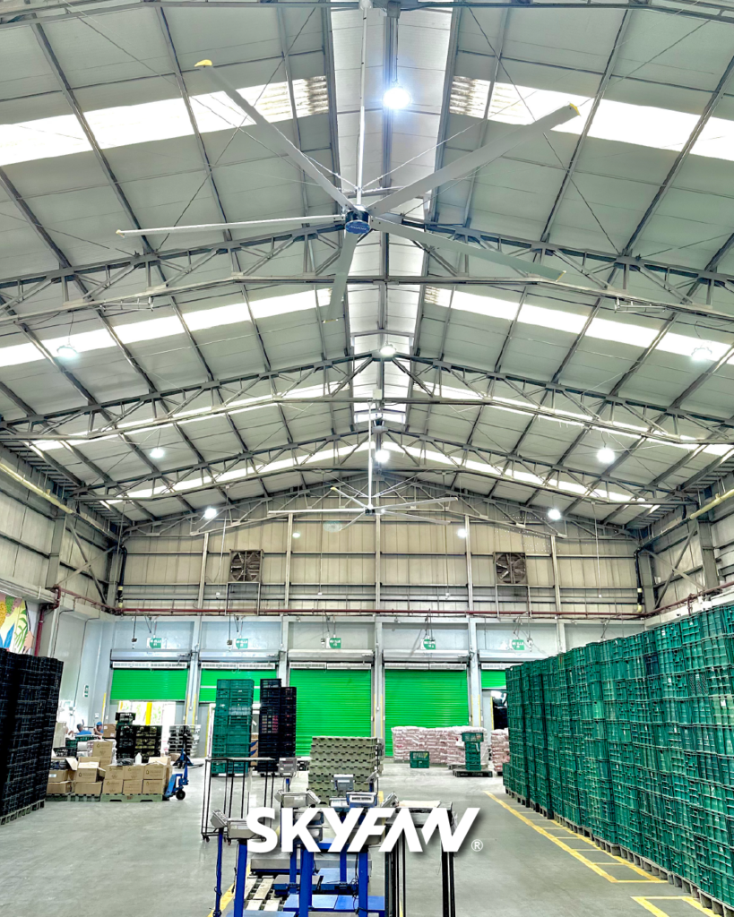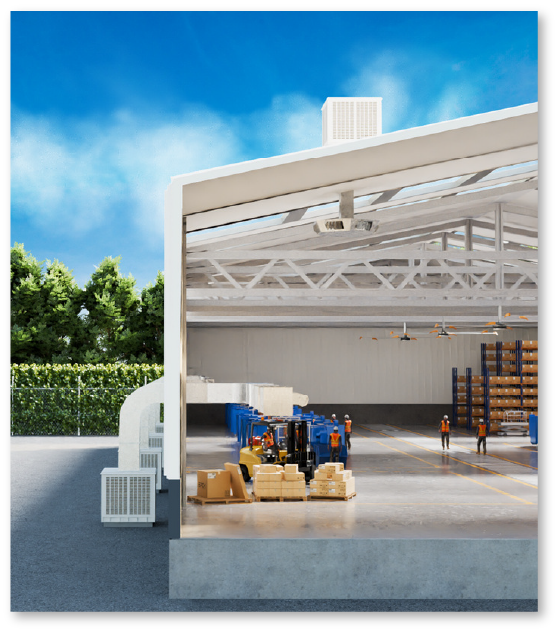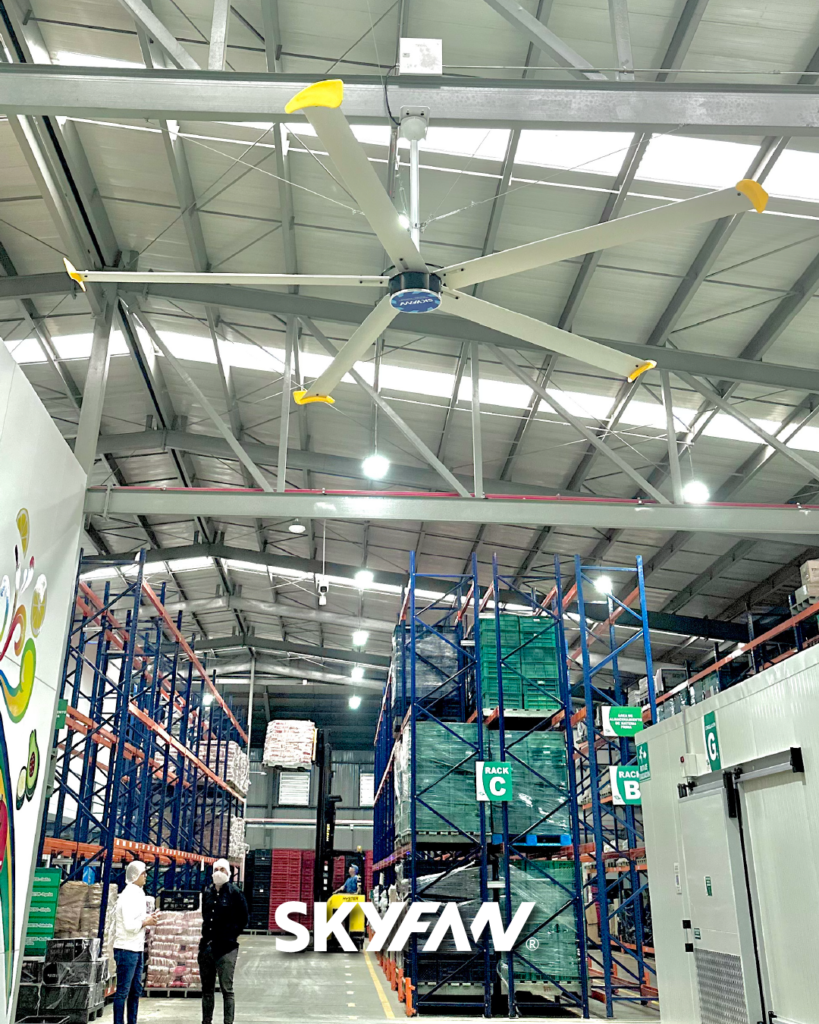 Un solo ventilador SKYFAN alcanza hasta 35 metros de diámetro y 900m² de cobertura.